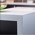 Comptoir usiné à base de quartz et d'agglomérant. Il est d'une beauté pure et sans imperfection. Plus dur que le granite et plus résistant. Il ne nécessite aucun traitement et il a des joints moins apparents.